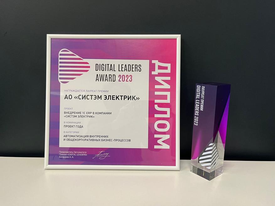 Компания «Систэм Электрик» получила награду Digital Leaders Award в номинации «Проект года», категория «Автоматизация внутренних и общекорпоративных бизнес-процессов». Digital Leaders Award — награда в рамках проекта «Время инноваций», которая вручается за высокие достижения в сфере цифровизации продуктов, процессов, сервисов и проектов, внесших вклад в развитие цифровых решений и онлайн-сервисов.