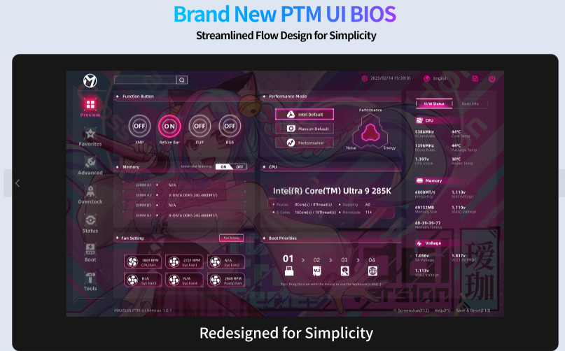 Дополнительно серия iCraft B860M Cross оснащена модернизированным BIOS PTM UI. Его интерфейс выполнен в стиле мобильных приложений с карточным отображением элементов и двухуровневой навигацией. Это делает работу с настройками системы более интуитивной и удобной.