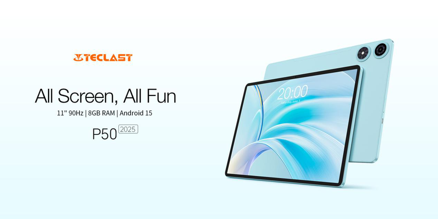 Teclast P50, доступный за 11 877 рублей, предлагает 11-дюймовый дисплей с частотой обновления 90 Гц и работает на Android 15. Процессор Unisoc T606, 8 ГБ оперативной памяти и 128 ГБ хранилища гарантируют плавную работу. Аккумулятор на 8000 мА•ч поддерживает до 13 часов работы, а камеры 13 Мп и 8 Мп подходят для фото и видеозвонков. В комплект входят клавиатура и чехол.