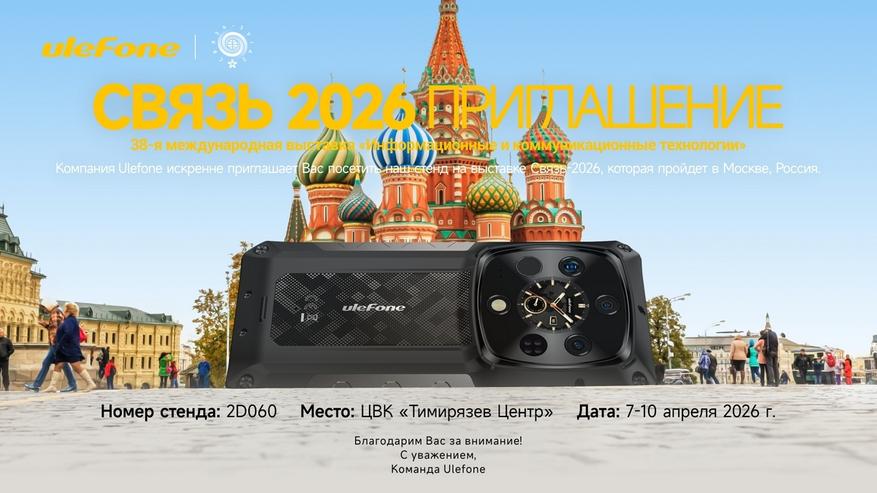 После триумфа на MWC Barcelona 2026 — где обе компании получили более шести наград Best of Show и похвалу от разных СМИ — Ulefone и RugOne готовятся к дебюту на SVIAZ 2026, который пройдет с 7 по 10 апреля в Центре имени Тимирязева, стенд 2D060.