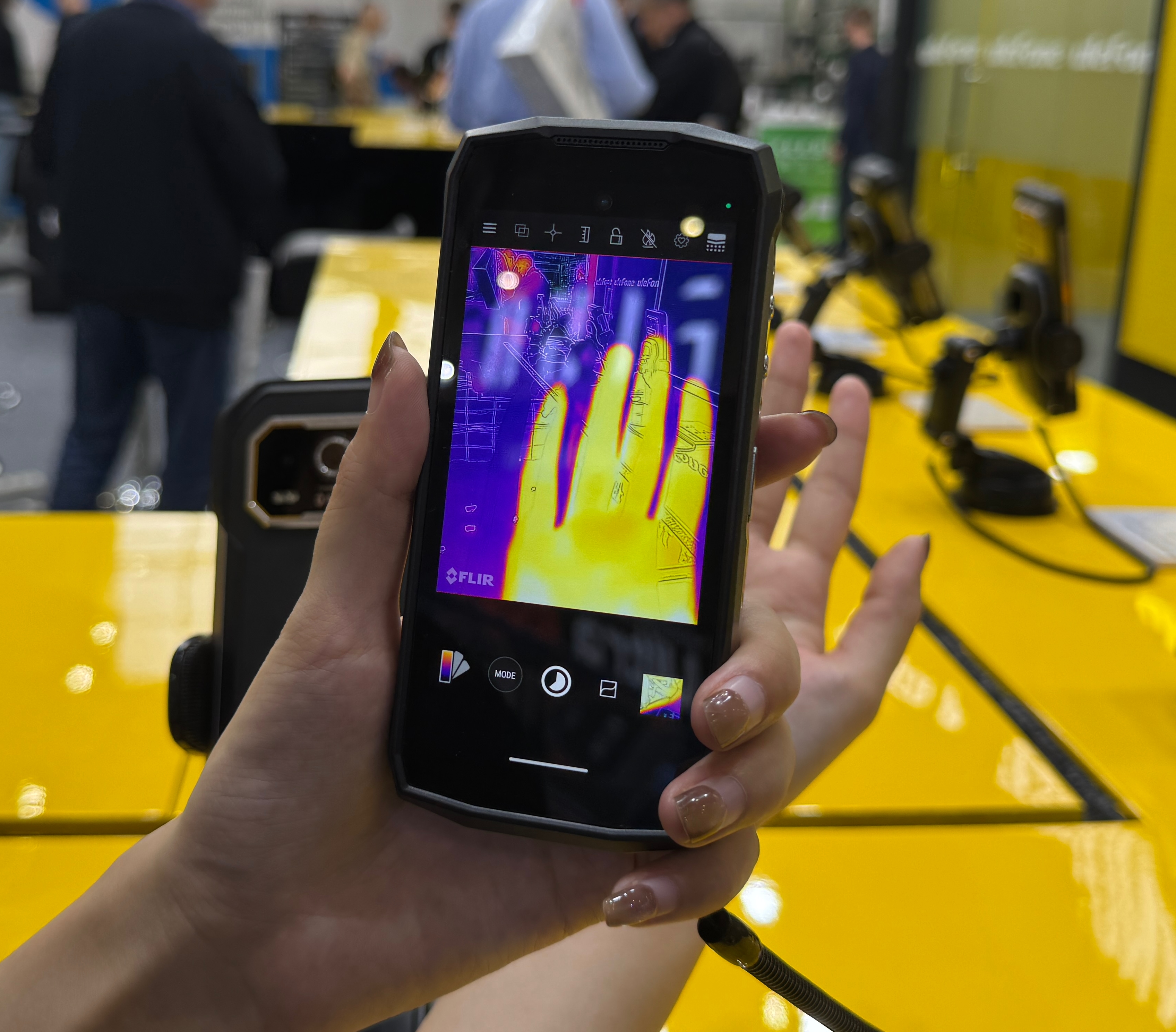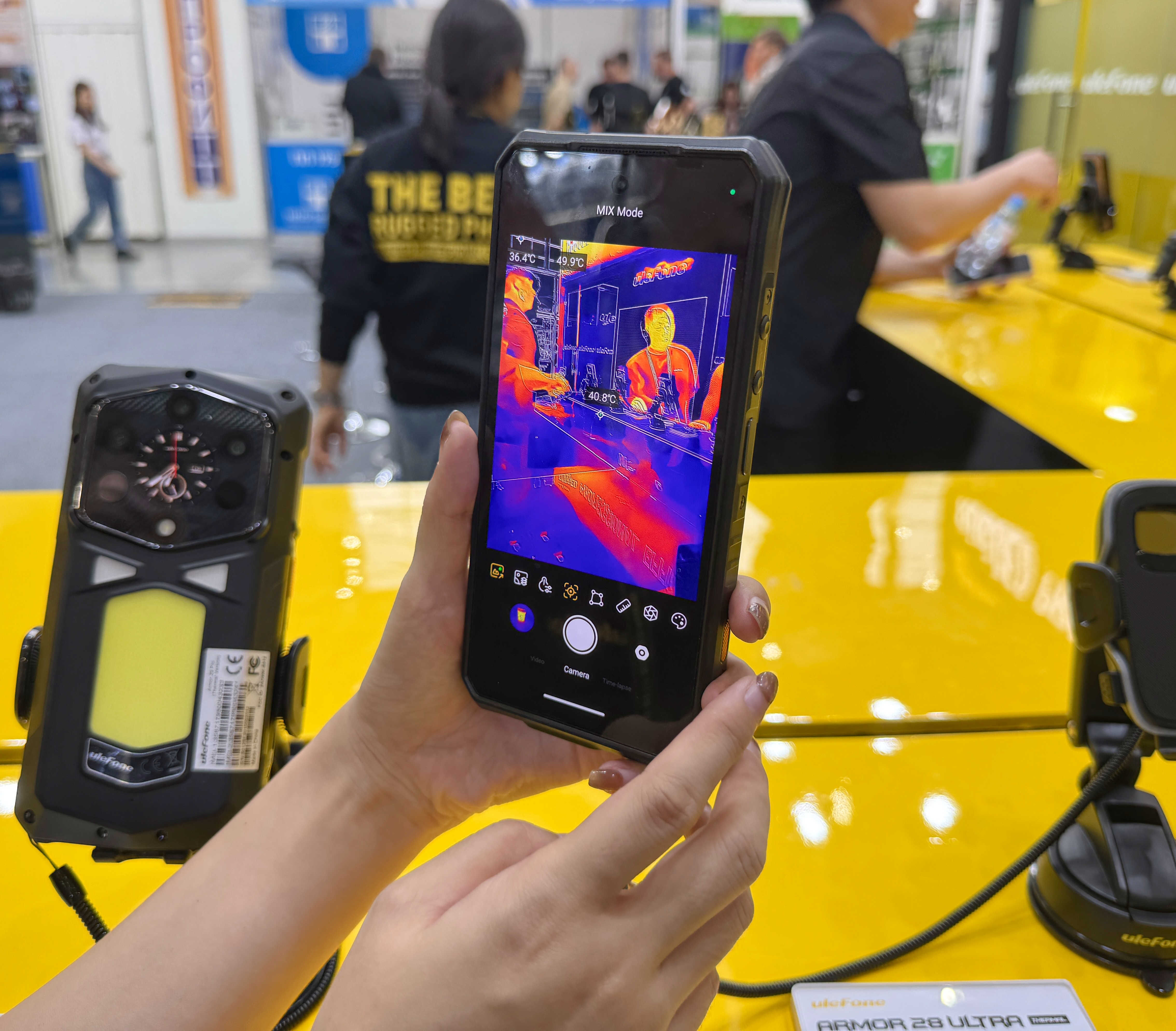 Посетители стенда могли не просто посмотреть на гаджеты, а испытать их в деле: погрузить в воду, уронить с высоты, проверить работу тепловизора или проектора в условиях имитации реального использования. Такой интерактивный формат наглядно доказывал: эти устройства созданы не для витрин, а для сложных задач — от спасательных операций и промышленного мониторинга до экспедиций и экстремальных видов спорта.