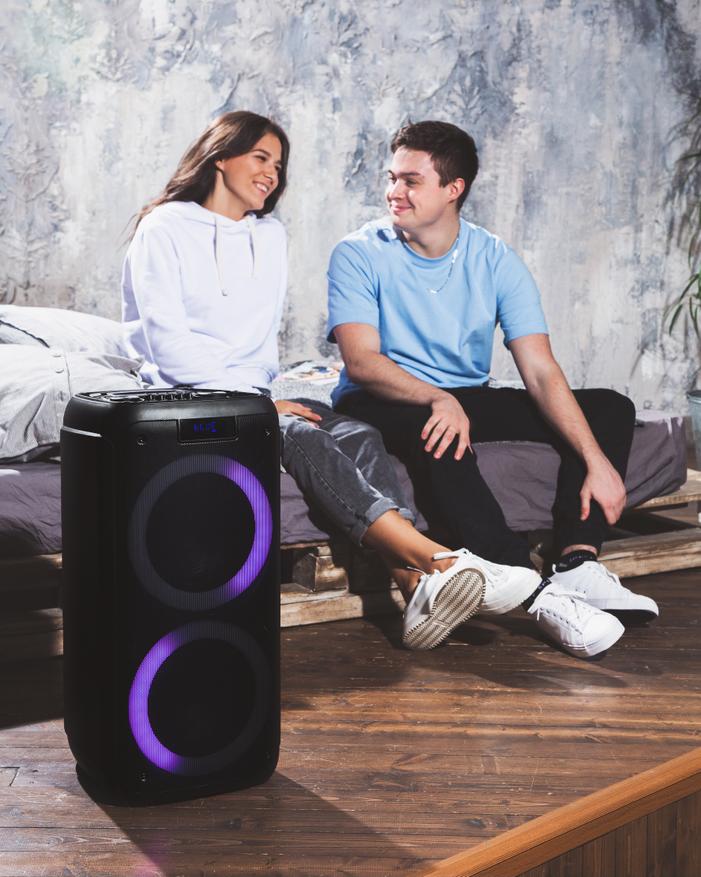 - В новой акустике все продумано на тот случай, если захочется сыграть или спеть в компании друзей — можно использовать колонку как караоке-станцию или FM-приемник. Разъемы для микрофона и гитары позволяют устроить настоящий караоке-баттл.