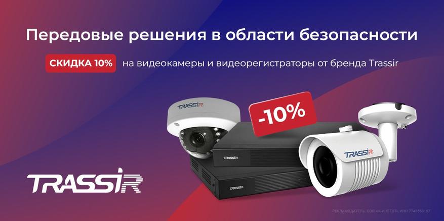 Производитель TRASSIR выпускает видеокамеры, видеорегистраторы и коммутаторы, а также разрабатывает специализированное программное обеспечение. Теперь продукция этого бренда стала еще более выгодной благодаря новой акции со скидкой 10%.