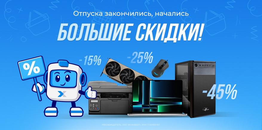 Скидки до 45% на компьютеры, печатную технику, смартфоны, компьютерные комплектующие