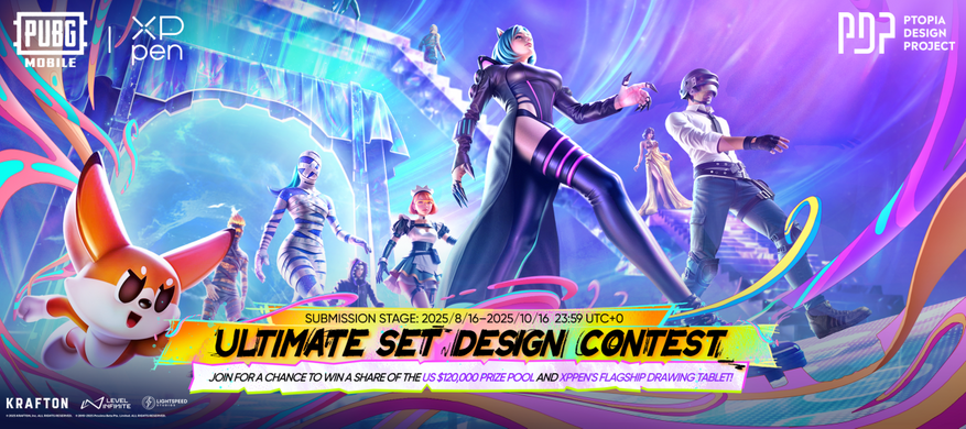 Совместный конкурс XPPen и PUBG Mobile, получивший название Ultimate Set Design Contest, стартовал 16 августа и продлится до 16 октября 2025 года. Участникам предлагается разработать дизайны для игровых элементов, таких как одежда, оружие и аксессуары, в рамках программы Ptopia Design Project. Особое внимание уделено новой теме «Эра будущего», созданной совместно с XPPen, которая побуждает авторов заглянуть в будущее. Победители получат денежные призы, графические планшеты XPPen и игровые предметы, а их работы могут быть интегрированы в PUBG Mobile. Судейская коллегия включает известных художников, таких как режиссер и 3D/VFX-специалист Клинтон Джонс, моушн-дизайнер Эстебан Диаконо, японский аниматор Рёта-Х, а также Шан Цзян и Джузеппина Аморозо.