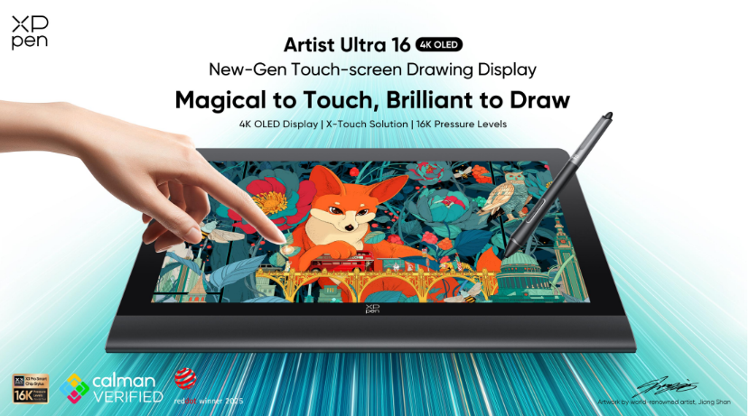 Artist Ultra 16 оснащён 15,6-дюймовым 4K OLED-дисплеем с контрастностью 100 000:1 и временем отклика 1 мс. Экран сертифицирован Calman, обеспечивает точность Delta E <1,1, 10-битное отображение и охватывает 99% Adobe RGB, 99% sRGB и 98% Display P3. Вместе со стилусами X3 Pro Smart Chip и X3 Pro Slim с распознаванием наклона на 60° и 16K уровнями давления устройство предлагает максимально естественный процесс рисования.