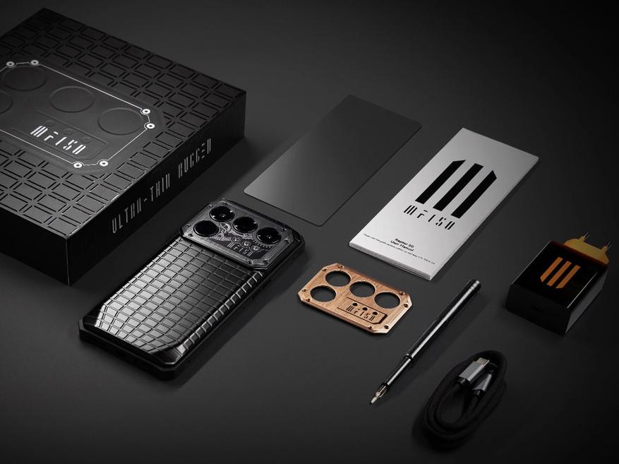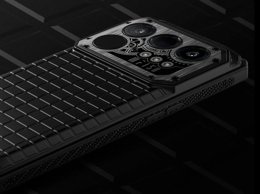 Задняя часть телефона, по словам производителя, выполнена в винтажном стиле, а сам корпус имеет улучшенную защиту от воды: как заявляет компания, аппарат способен выдержать нахождение на глубине до шести метров в течение 24 часов. Кроме этого, получаем стандартный набор сертификатов в виде IP68, IP69K и MIL-STD-810H.