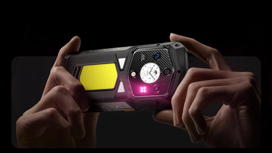 Задняя камера состоит из трех модулей: главного Samsung GN1 на 50 МП, широкоугольного JN1 с режимом макро и «датчика ночного видения» Omnivision OV64B. Фронталка имеет высокое разрешение 50 МП и также представлена сенсором Samsung JN1. Огромная батарея на 21200 мАч поддерживает проводную зарядку на 120 Ватт, а также обратную зарядку на 10 Ватт. Из прочих параметров стоит отметить разъём для подключения наушников, встроенный в кнопку питания сканер отпечатков, «кемпинговый» фонарик, NFC, Wi-Fi 6e, фирменный порт uSmart и защиту по трём сертификатам (IP68, IP69K, MIL-STD-810H). Габариты корпуса составляют 177.35 x 85.6 x 33.8 мм, а масса — 688 грамм.
