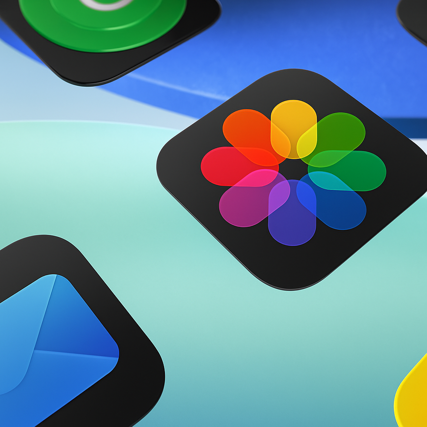 Иконки приложений и виджеты теперь состоят из слоёв Liquid Glass и автоматически подстраиваются под тему — они могут быть обычными, цветными или прозрачными. В macOS 26 (Tahoe) можно настраивать внешний вид рабочих столов и Dock, выбирая цветовые оттенки или полностью «чистый» (clear) режим с прозрачными иконками.