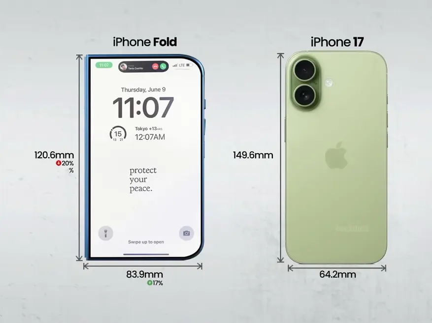 Согласно данным аналитика Минг-Чи Куо, складной iPhone получит внутренний дисплей диагональю от 7,7 до 7,8 дюйма и внешний экран размером 5,5 дюйма. Толщина устройства в разложенном состоянии составит около 4,5 миллиметра, в сложенном — примерно 9,6 миллиметра.