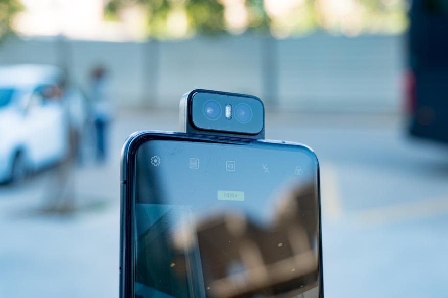 И вот главная фишка ZenFone 6: весь модуль умеет разворачиваться в сторону пользователя. Уникальный случай: обычно фронтальная камера намного хуже основной, а здесь сама основная превращается во фронтальную. А фронталки на базе Sony IMX586 нет ни у кого. Получаются отличные селфи даже в контровом свете.
