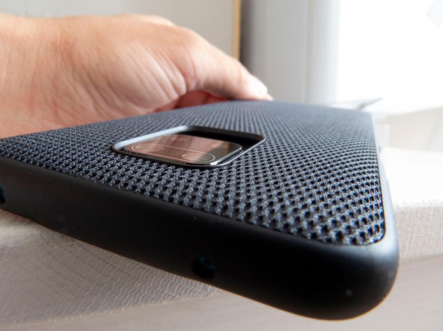 Края выреза под блок камер не такие высокие как у стокового силиконового бампера, и они помогают камерам избегать прямого контакта с поверхностью. Тем не менее это условная защита т.к. такая защита работает только на ровной поверхности стола. В этом месте я перейду непосредственно к примерке бампера.