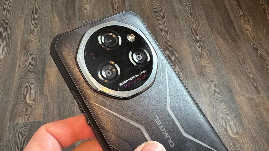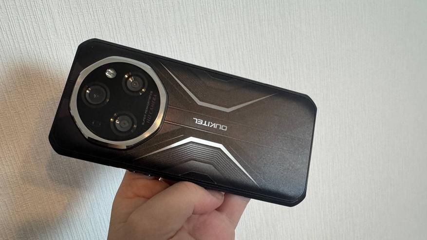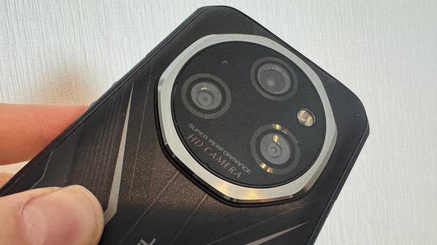 В руках WP55 PRO ощущается сбитым. В отличие от Ultra, задняя панель не имеет рельефных вставок — пластик гладкий, с матовым эффектом. Корпус чуть менее «тактильный» на ощупь, но всё ещё уверенно лежит в руке. Тот самый тепловизор, который был визитной карточкой Ultra, здесь отсутствует, зато остался 8 МП модуль ночного виденья с двумя инфракрасными диодами, модуль доя макро-съемки на 2 МП (у Ultra на 5 МП). Основной модуль камеры на 12 МП и максимальным разрешением снимков 108 МП со своими болячками.