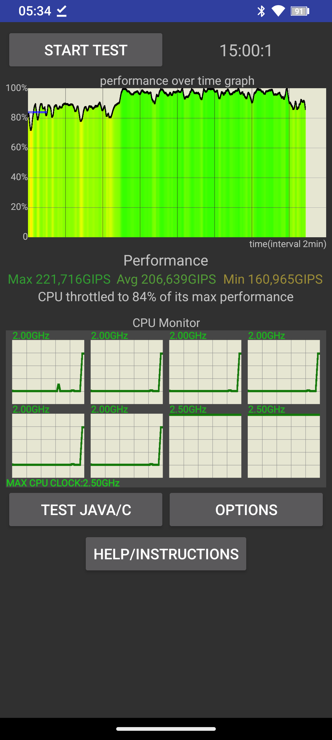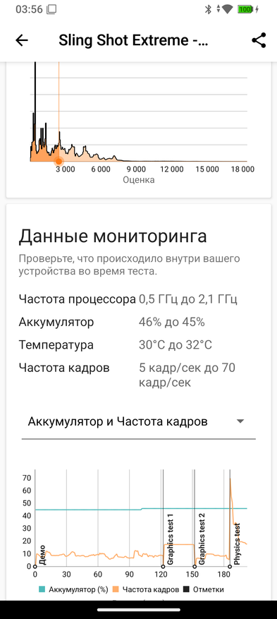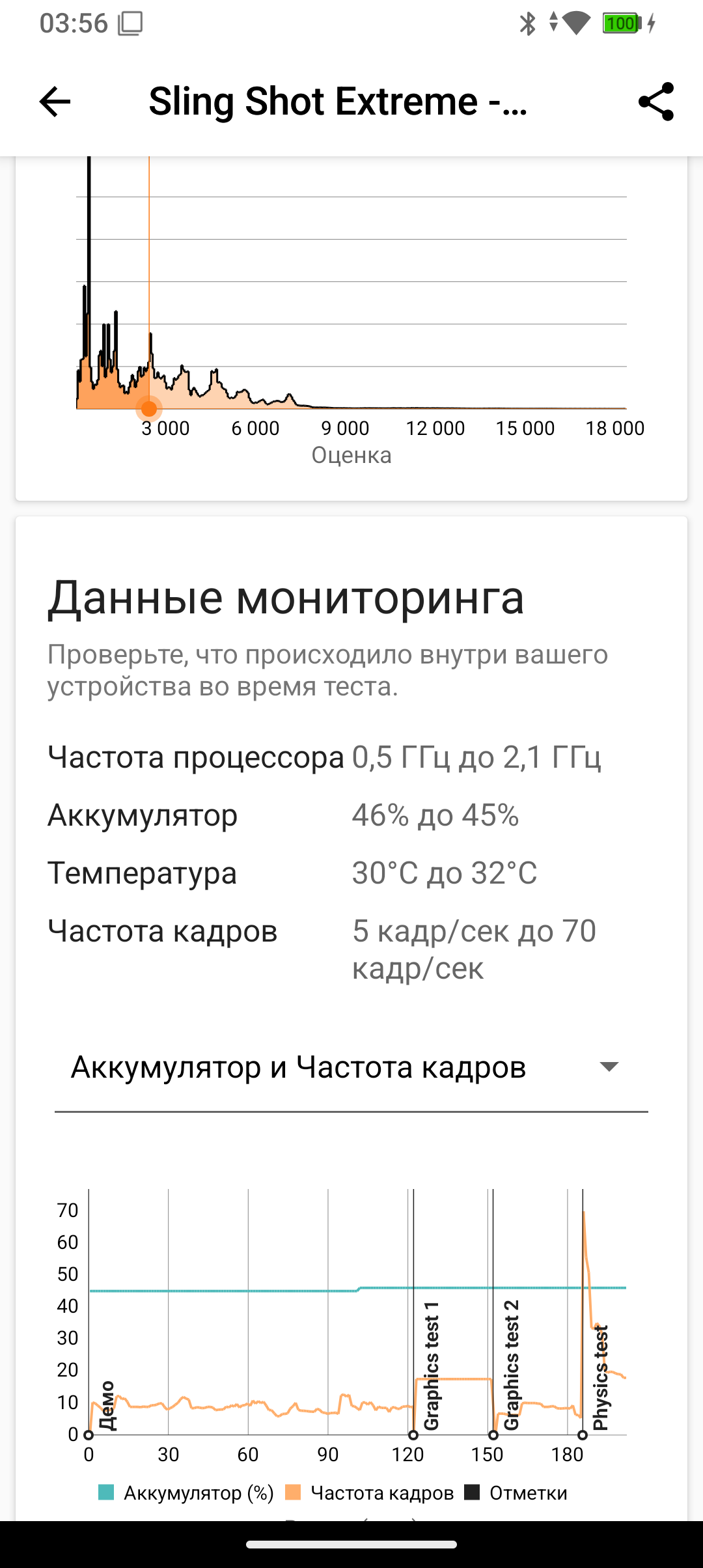 Также для проформы прогнал Geekbench. В многоядерном режиме выбил 2306 очков, что очень даже неплохо. И весьма базовый тест «Sling Shot» в 3DMark. Результат для бюджетника тоже вполне неплохой. А вот в CPU Trolling Test в начале процессор подсел в производительности, но потом подстроился и выровнял производиельнось. Среднее значение составило 206 GIPS. У более мощных процессоров типа Snapdragon 7 Gen 4 в среднем получается около 250 GIPS. В стресс-тесте AnTuTu тоже не все гладко. Средняя производительность за 45 минут держалалась на уровне между 85 и 60%.