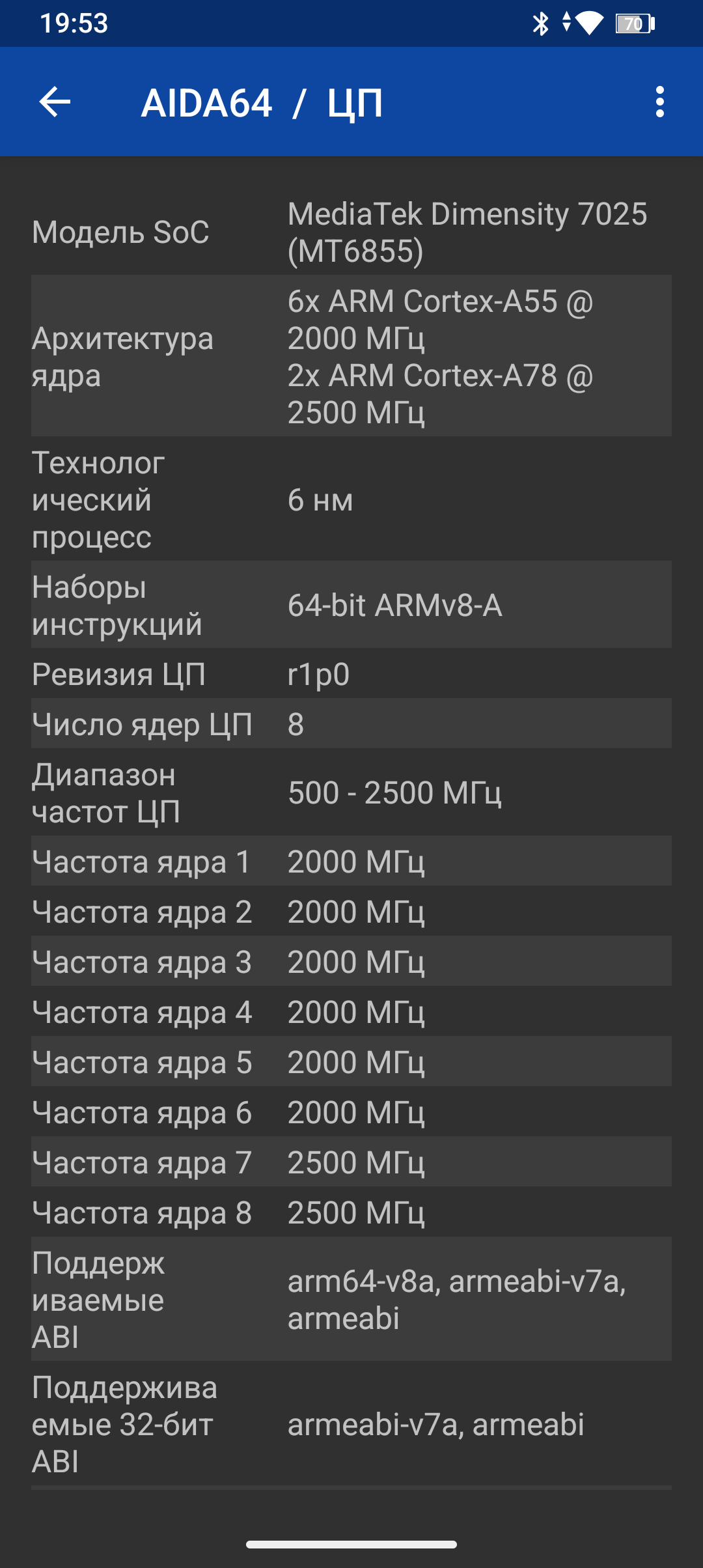 | Процессор | Dimensity 7025 Ultra (8 ядер), 2.5 ГГц |