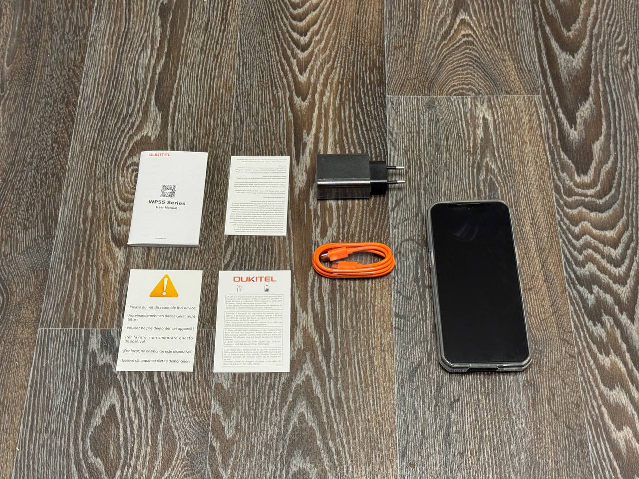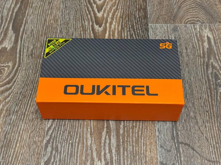 Коробка узнаваема — Oukitel не отходит от фирменной эстетики: комбинированные оттенки, минимализм и крупное название бренда в нижней части. Список параметров на обратной стороне не перегружен — процессор и камеры. Уже по упаковке понятно, что перед нами не дизайнерский флагман, а просто защищенный смартфон, который не пытается казаться премиальным.