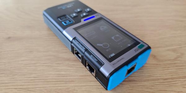 Слева вверху расположена кнопка питания (алюминиевая), по центру оранжевая кнопка вызова по рации (PTT, работает через IP-приложение).