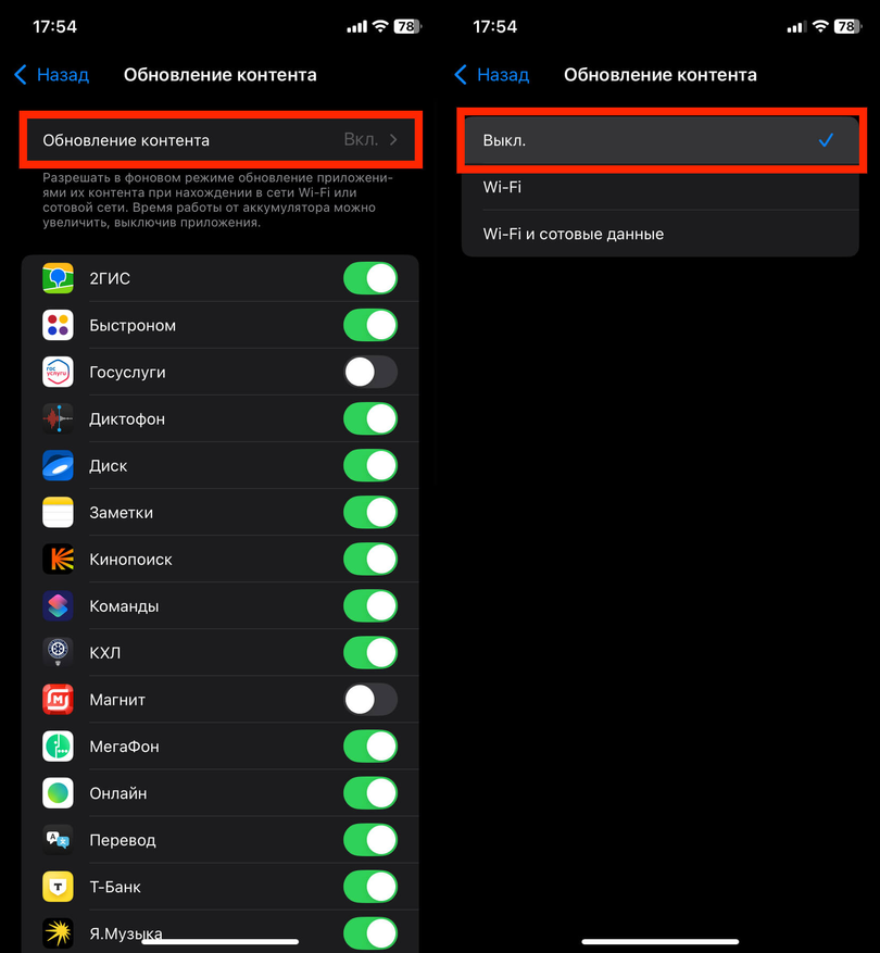 Фоновое обновление контента будто помогает приложениям стартовать быстрее, но чаще просто ест заряд. Если пользы не видите, смело выключайте.
