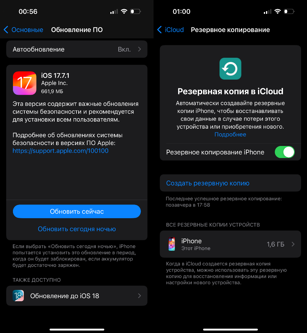 Нередко новые версии iOS содержат обновления безопасности, что снижает риск взлома устройства и кражи данных. Найти возможные обновления можно в «Настройки — Основные — Обновление ПО». В этом же разделе можно настроить автообновление.