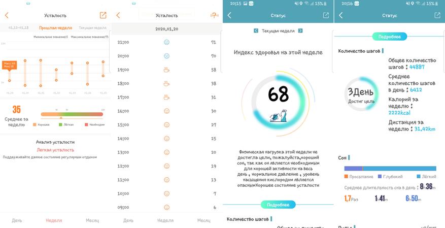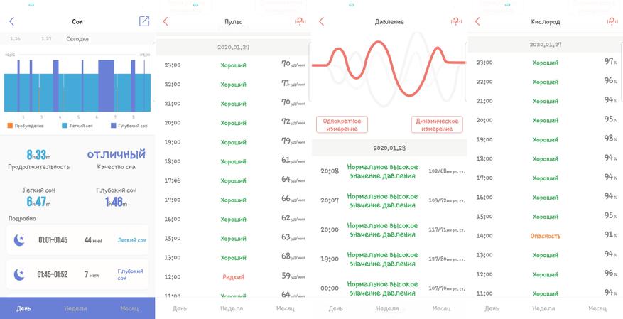 Аналогичная статистика доступна касательно данных сна, пульса, давления и кислорода в крови. Повторяю, что показания эти вычисляются программным методом на основании пульса и математических расчетов, поэтому отношусь к ним не серьезно.