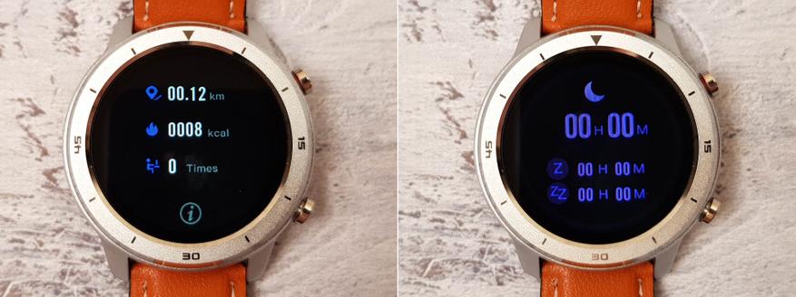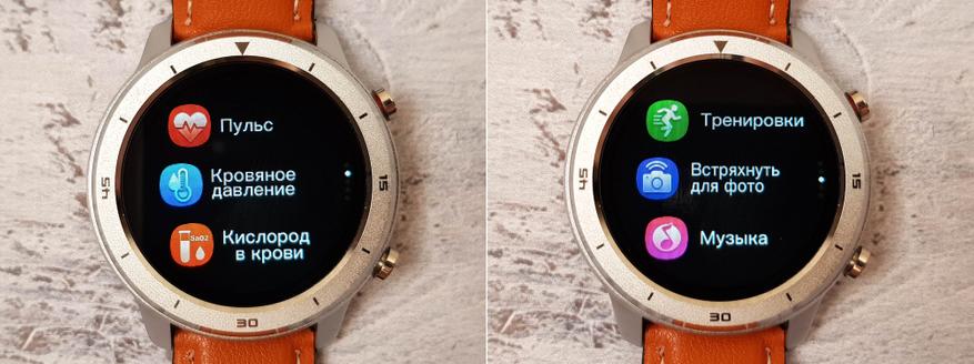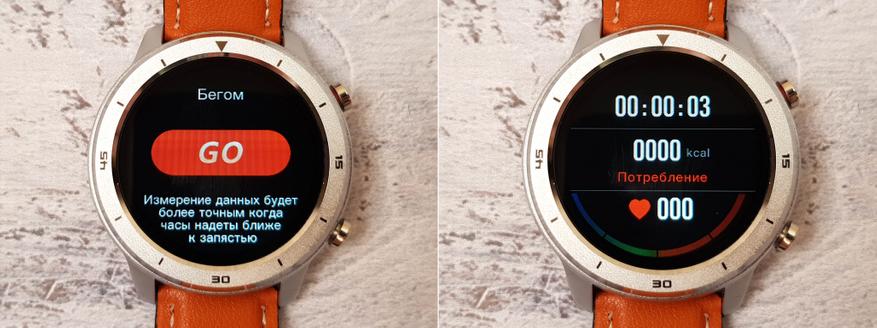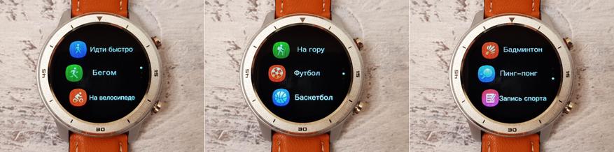 Есть разные программы тренировок, но фактически они ничем не отличаются. На экране просто отображается пульс, время и затраченные калории. Более того, при беге часы некорректно подсчитывают пульс, сильно занижая его, поэтому для спорта они не годятся. Возможно показания поправят с последующей прошивкой (часы только недавно вышли), ее можно установить через приложение.