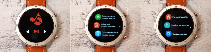 Из полезного есть управление музыкой, на тренировках удобно не доставая смартфон из кармана переключать треки. Еще есть таймер, секундомер, жест поднятия руки для активации экрана и настройка продолжительности подсветки. С помощью часов можно найти свой затерявшийся в квартире смартфон.