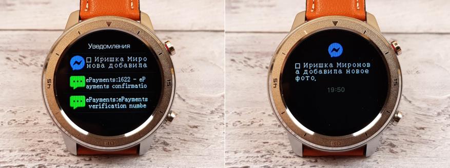 Свайп вправо вызывает экран с уведомлениями, настраиваются они в приложении. Русский язык есть как в самих часах, так и в отображаемых уведомлениях. Изначально часы были на английском, но при сопряжении со смартфоном и приложением Wearfit 2.0, язык автоматически переключился на русский.