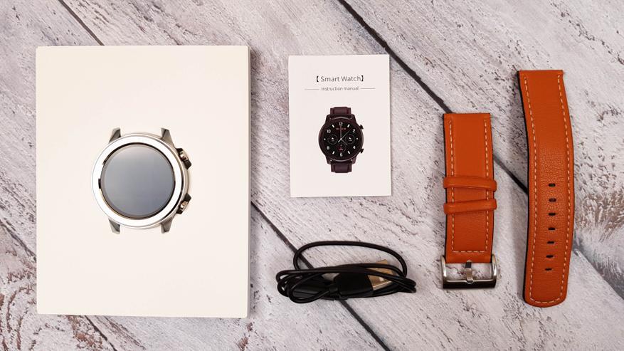 В комплекте: часы, ремешок, зарядный кабель и инструкция. В инструкции есть ссылка на приложение для смартфона.