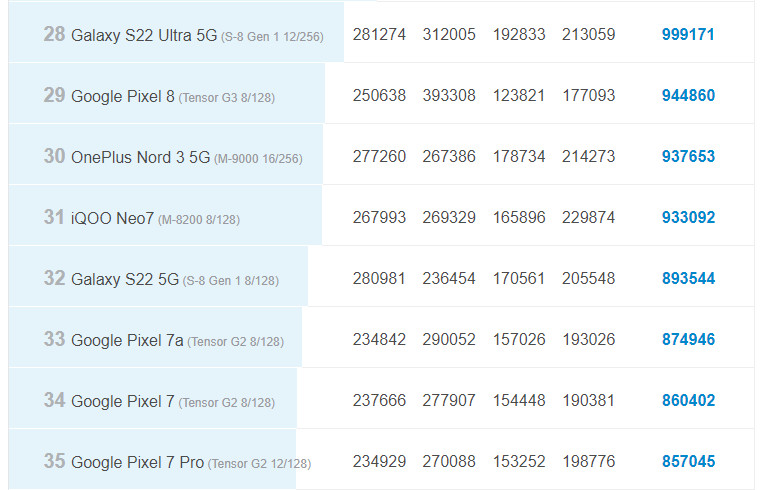 Если мы обратимся к результатам синтетического теста AnTuTu 10, которые опубликованы на официальном сайте этого популярного бенчмарка, то увидим, что Google Pixel 8 с Tensor G3 набирает в нём около 945 тысяч очков, а Pixel 7 с Tensor G2 — чуть больше 860 тысяч. Если учесть, что Pixel 7a в той же версии тестового приложения получил почти 875 тысяч баллов, что находится примерно на одном уровне с Pixel 7, то можно смело предположить, что результат Pixel 8a будет недалёк от показателя Pixel 8. Иными словами, радикального роста быстродействия по сравнению с Pixel 7a в повседневных задачах ожидать не следует. Впрочем, даже этого будет вполне достаточно, ведь двухлетний флагман Samsung Galaxy S22 на базе Qualcomm Snapdragon 8 Gen 1 в том же самом AnTuTu 10 показывает даже чуть меньшую цифру. Для игр, даже требовательных, и с максимальными настройками, потенциала чипа хватит. Интереснее будет посмотреть, справились ли разработчики на этот раз с тепловыделением, которое немного портило впечатление от старших Pixel 8 / 8 Pro, если верить обзорам на просторах интернета.
