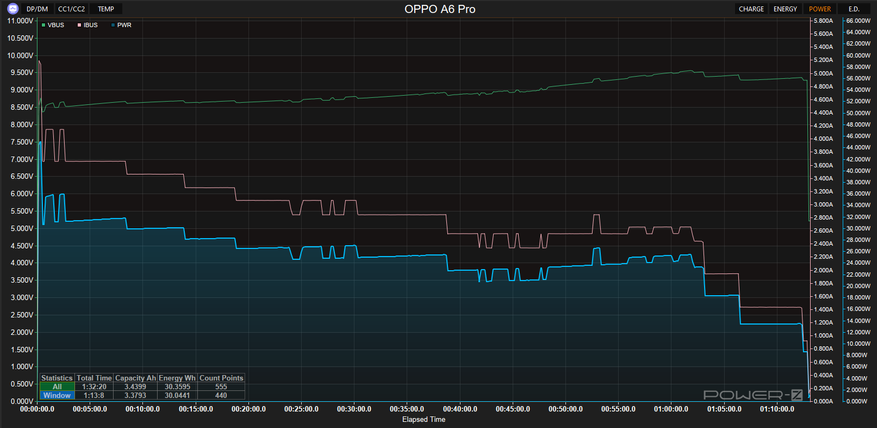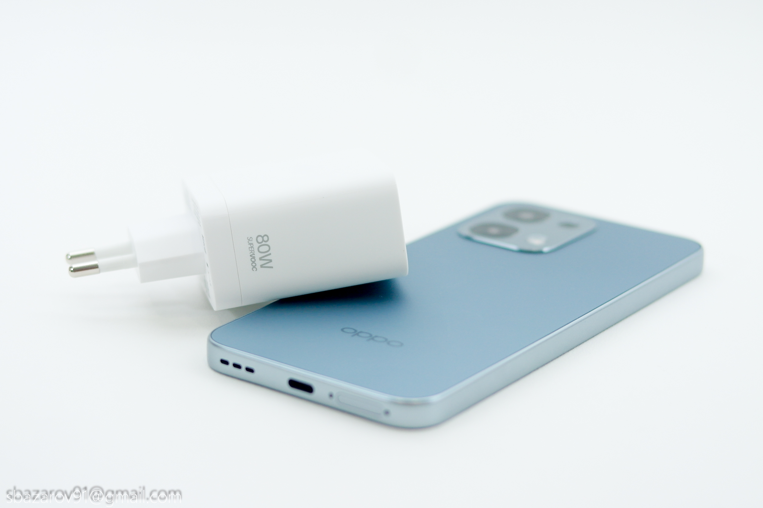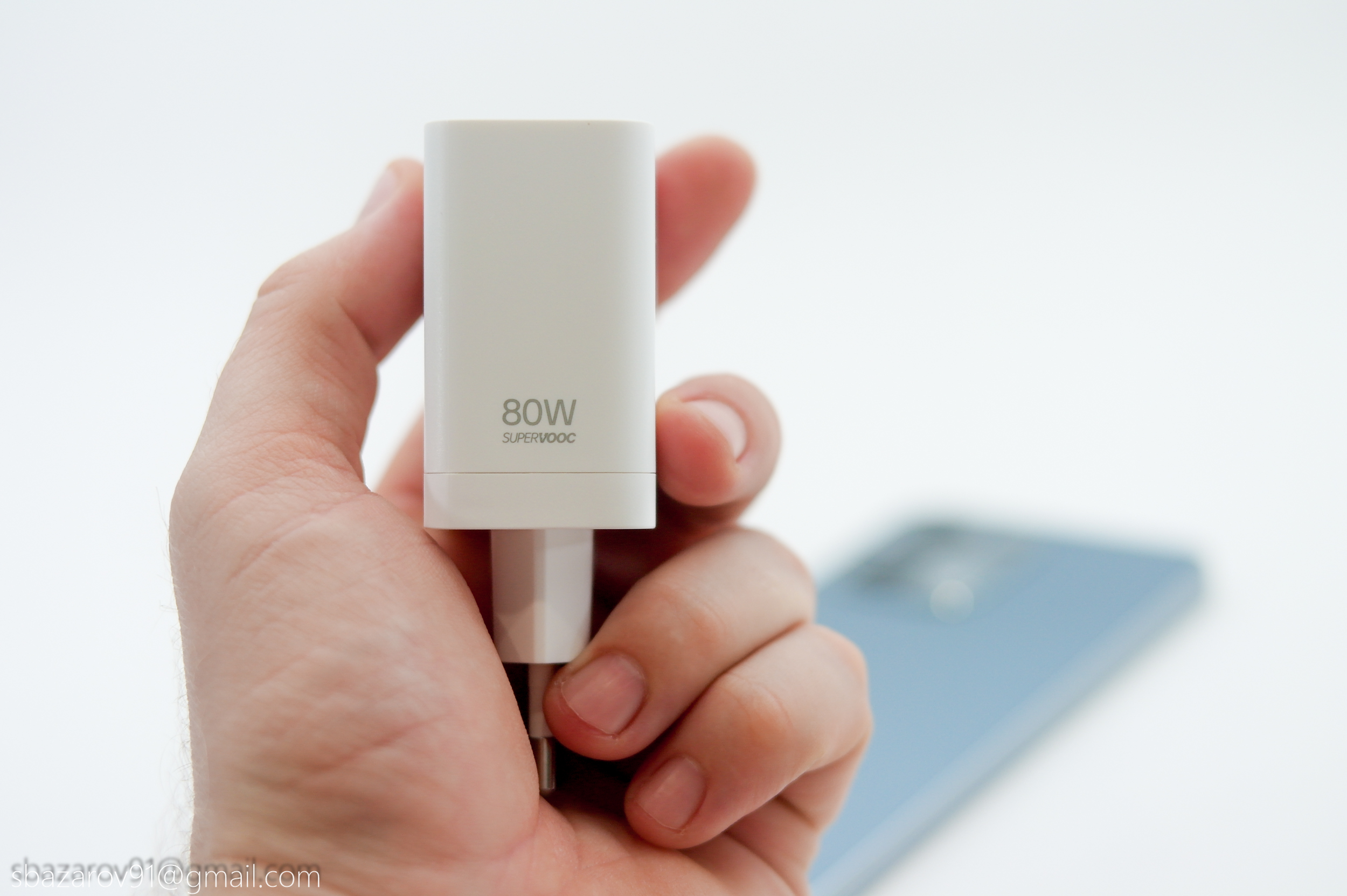 Для зарядки своего нового смартфона OPPO предлагает фирменное ЗУ на 80 Вт. Работает оно по протоколу SuperVOOC, поэтому для достижения лучшего результата, а это 61 минута на весь цикл заряда, лучше использовать оригинальные аксессуары. Если их под рукой не будет, то максимум, что становится доступным — PD3.0 с потреблением 22 ватт.