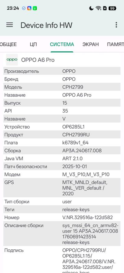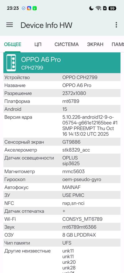 Навигационные системы представлены всеми популярными спутниками: GPS, GLONASS, Beidou, Galileo, QZSS, NAVIC. Приём сигнала сильно лучше, чем тот, что был у OPPO A5 Pro (точность была 3 метра). У нового OPPO A6 Pro время холодного старта до точности в 1 метр — 10 секунд. Также на борту есть Bluetooth 5.4 и NFC для бесконтактных платежей.