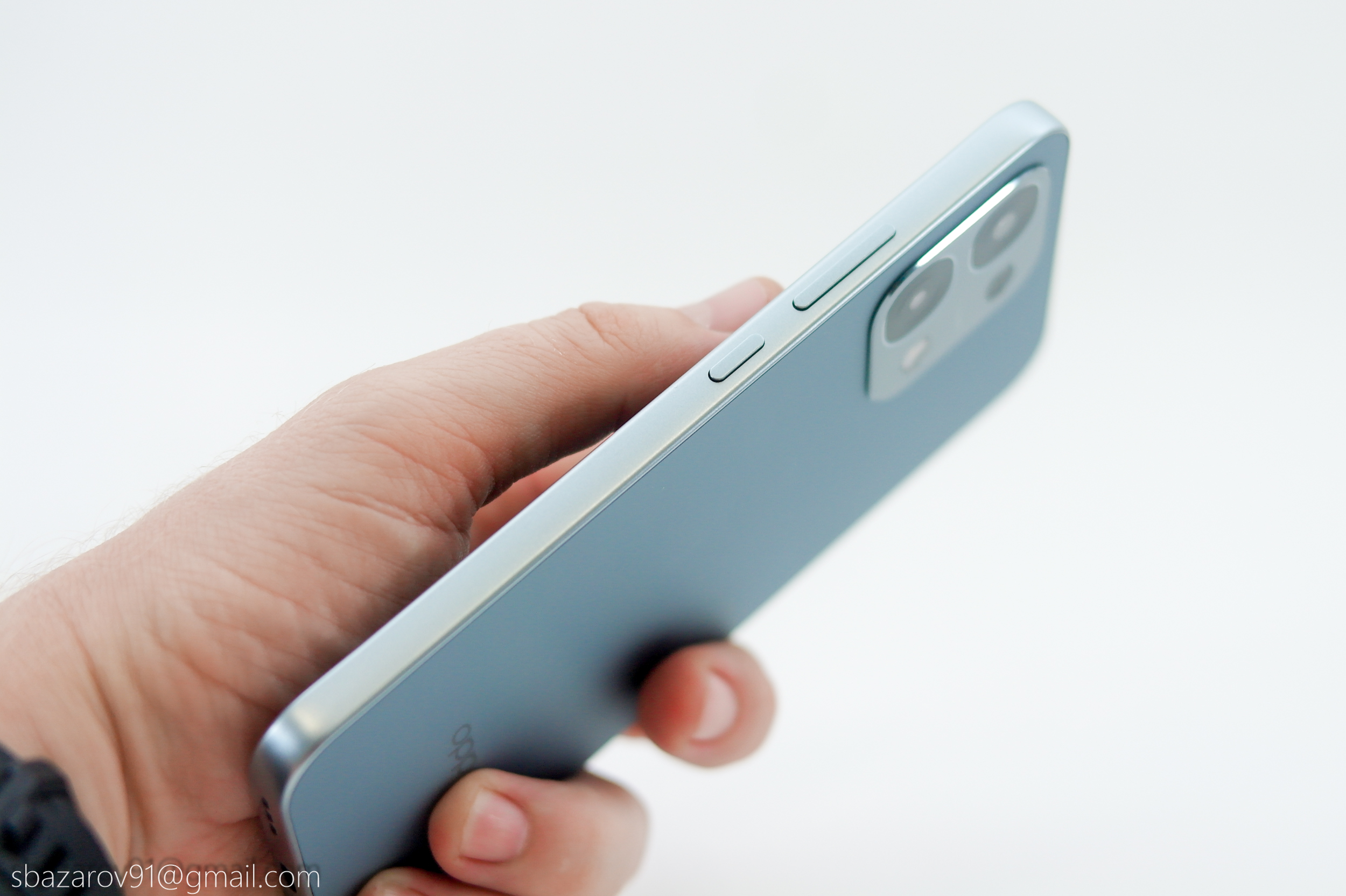 Текущее обновление больше затронуло техническую составляющую, нежели дизайн, который остался верен предыдущему поколению OPPO A5 Pro — всё те же плоские грани, компактный корпус (158.2x75x8 мм) и оптимальный вес (188 г). В обычной мужской руке лежит идеально, не много и не мало. Цветовая гамма всё так же представлена двумя цветами, но в этот раз более пастельными: пыльно-зелёный и звёздный синий. Если первый находится где-то между светло-голубым и серым, то второй имеет насыщенный цвет звёздного неба.