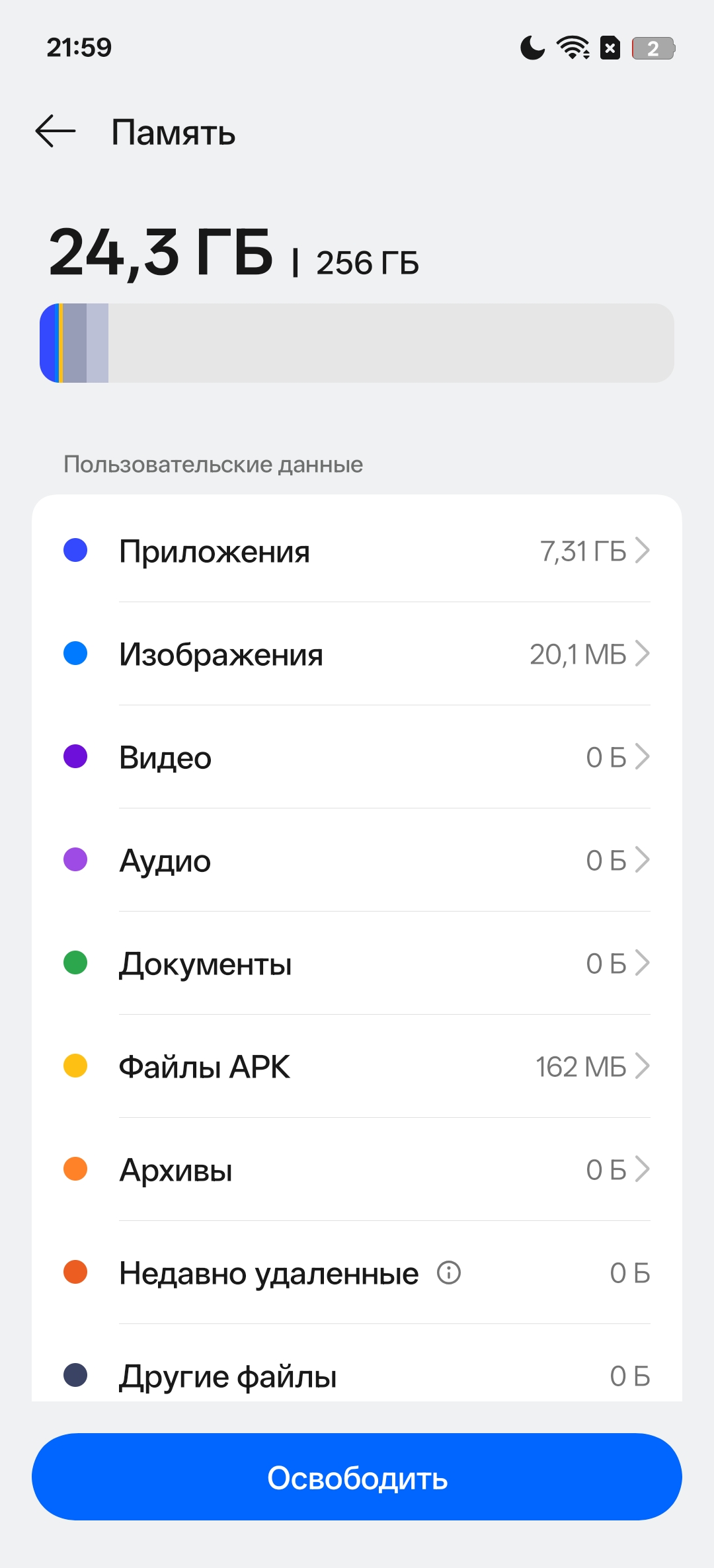 | Тип накопителя | UFS 2.1 (513,7 / 267,3 МБ/с) | UFS 2.2 (1068 / 898,6 МБ/с) |