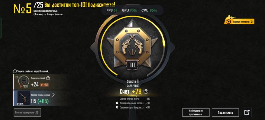 Любите играть? OPPO A6 Pro неплохо справляется с современными играми. Для примера был запущен PUBG: Mobile на автоматических настройках графики (графика — баланс, частота кадров — ультра). Средняя частота кадров составляет 40 FPS, как при обилие текстур в кадре, так и при перестрелках. Нагрев за игровую сессию умеренный, руками практически не ощущается.