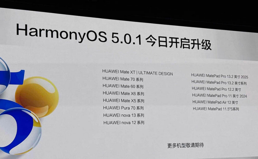 Компания Huawei 19 мая объявила о начале развертывания новой версии программного обеспечения HarmonyOS 5.0.1. Обновление охватывает 14 флагманских смартфонов и планшетов, включая серии Mate, Pura, Nova и MatePad.