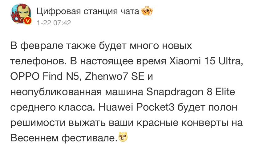 Типстер DCS на Weibo поделился информацией о сроках запуска смартфона. Согласно сообщению, телефон будет представлен на Весеннем фестивале, который будет отмечаться с 29 января по 12 февраля.