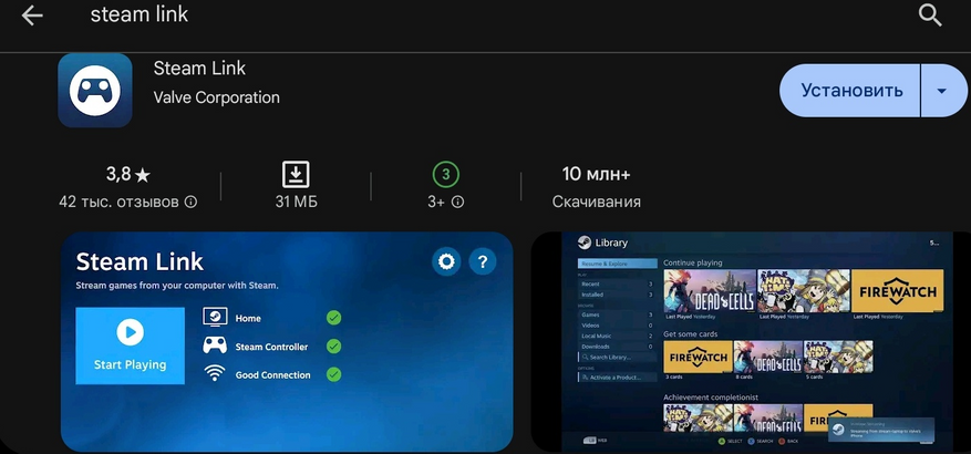 3. Устанавливаем из Google Play приложение Steam Link на свой смартфон и смело его запускаем.