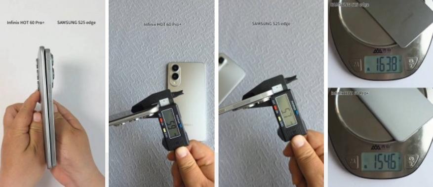 Infinix Hot 60 Pro+ сравнили по толщине корпуса и весу с Samsung Galaxy S25 Edge