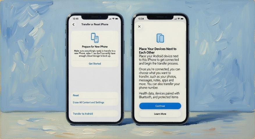 Теперь переключиться с iPhone на смартфон с зелёным роботом стало гораздо легче. Apple скооперировалась с Google и разработала удобный инструмент миграции: нужно просто поднести два смартфона рядом — и процесс запускается автоматически. Переносятся все важные данные, фотографии, контакты, сообщения, заметки, установленные приложения и даже некоторые пароли. Раньше для этого требовались провода и сторонние программы, а теперь всё происходит беспроводным способом за счёт новой высокоскоростной технологии Wi-Fi peer-to-peer.