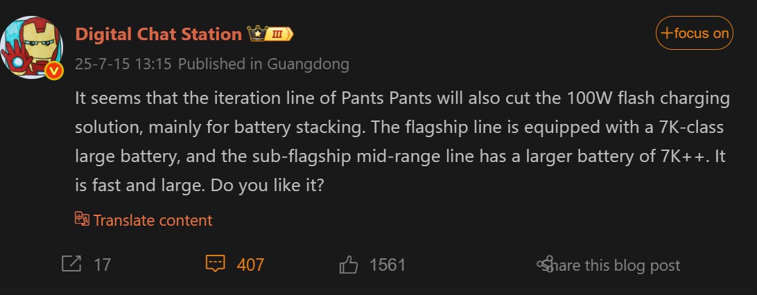 iQOO снова собирается удивить автономностью. Надежный инсайдер Digital Chat Station сообщил, что новый флагман бренда получит аккумулятор «7K-класса», то есть ёмкость будет близка к 7000 мАч. Для сравнения, у прошлогоднего iQOO на Snapdragon 8 Elite была батарея на 6150 мАч, а среди конкурентов такой объём встречался разве что в RedMagic 10S Pro с его 7050 мАч.