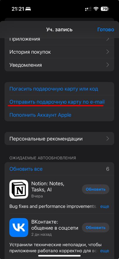 Как купить подарочную карту на Айфоне