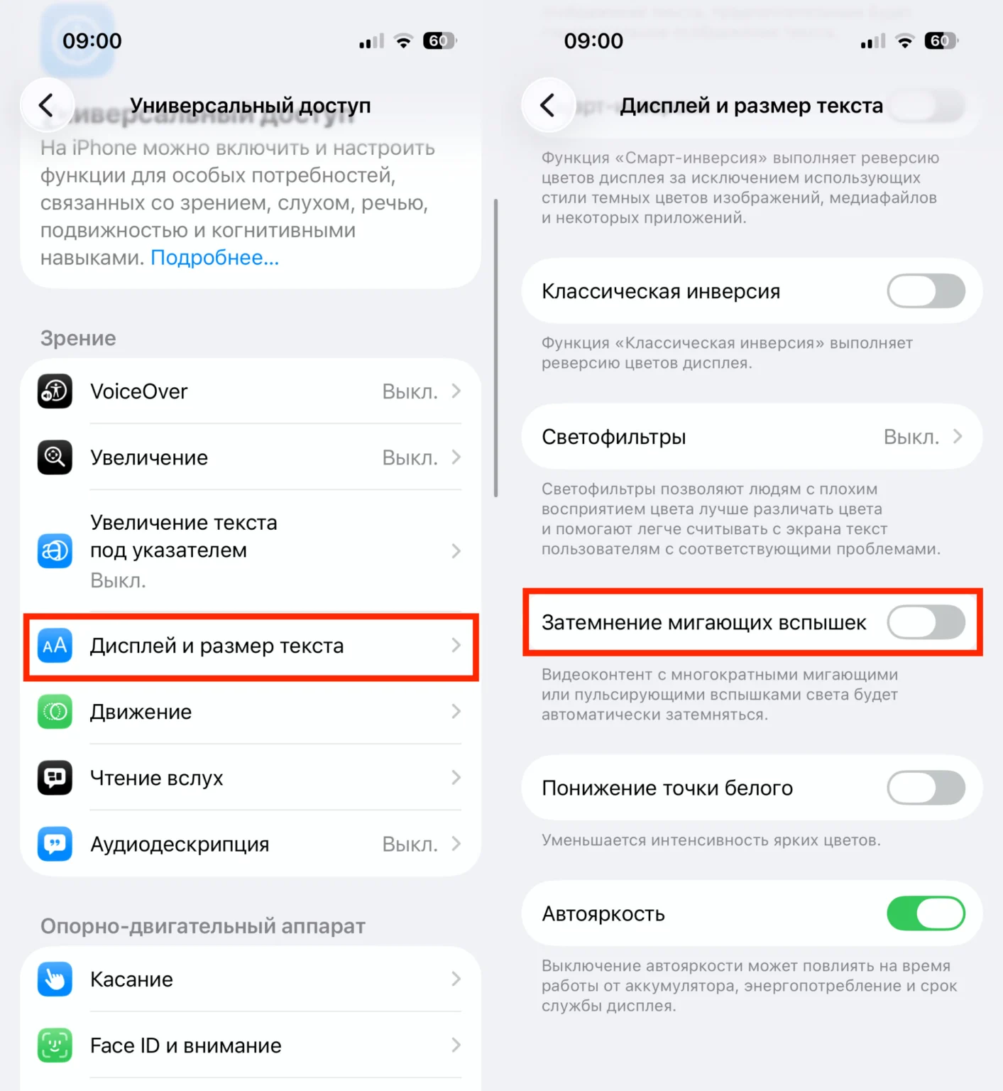 Включите переключатель — и яркие вспышки сразу же исчезнут. Перезагружать iPhone не требуется, изменения применяются мгновенно.