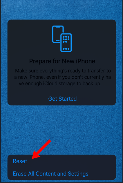 Далее выберите кнопку «Сброс». Перед вами появится список из нескольких вариантов.