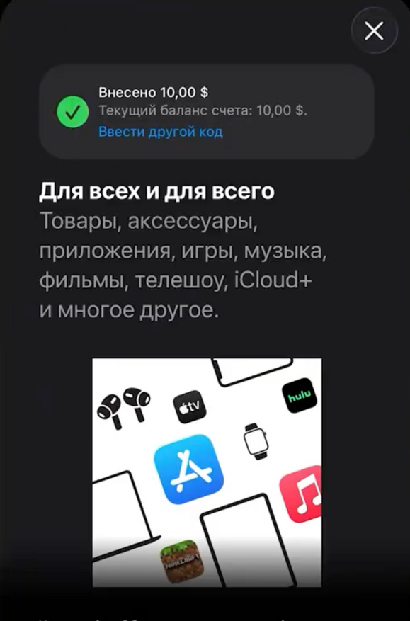 Об этом подробнее писал в статье «Как пополнить любой Apple ID (App Store) на Айфоне».