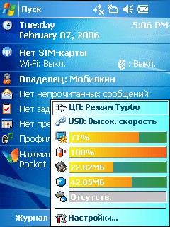 Экран типичный для своего времени: TFT-TN, 2,8 дюйма, 240x320 пикселей и резистивный сенсор. При желании телефоном можно управлять с помощью пальцев, хотя из-за мелких элементов в интерфейсе это не очень удобно. Microsoft сделает «дружелюбную» к пальчикам Windows Mobile 6.5 только спустя три года, когда будет уже откровенно поздно. Взглянуть на неё вы можете, например, в моём обзоре легендарного HTC HD2.