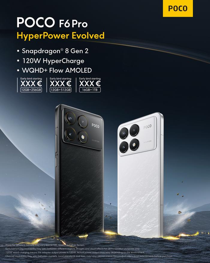 23 мая будут представлены новинки от компании Poco, а именно: смартфоны F6 Pro и F6. Новинки получили современную начинку. Так, к примеру, у POCO F6 Pro установлен процессор Snapdragon(r) 8 Gen 2 позволяющий набирать в Antutu более 1.5 млн. очков. Кроме того, в смартфоне будет установлено 12 Гб оперативной памяти и 1 Тб флеш-накопитель. POCO F6 чуть скромнее по начинке и будет частично дублировать более мощного брата. А вслед анонсированной линейки смартфонов POCO F6 (F6 и F6 Pro) будет представлен еще и первый планшет POCO Pad.