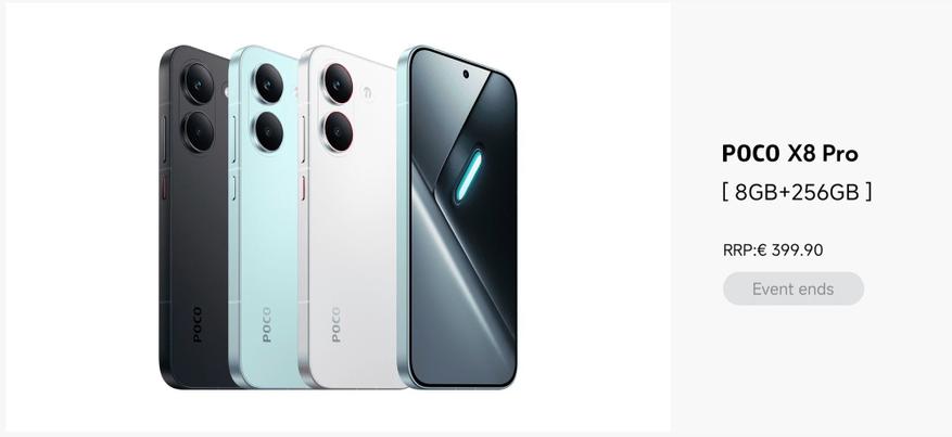 Несмотря на отсутствие официальных заявлений от Xiaomi касательно выпуска моделей Poco X8 Pro и Poco X8 Pro Max на международном рынке, оба устройства уже были замечены в каталоге на сайте Xiaomi Belgium, где были указаны их европейские цены. Согласно данным, представленным на сайте смартфоны, относящиеся к среднему ценовому сегменту, будут доступны по следующим расценкам:
