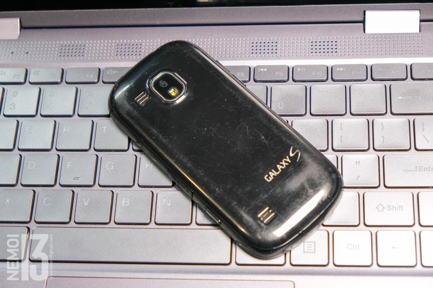 Как видим, время его не очень пожалело. Он весь потёртый, защитная плёнка местами начала отклеиваться. Батарея у телефона держится всего 3-4 часа в режиме ожидания и максимум час в режиме активного использования.