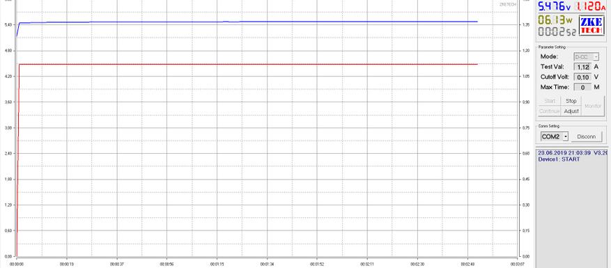 Блок питания стабильно держит нагрузку в 1.13 А, но вот у кабеля возникли большие просадки даже при токе в 1 А, а заряжать им устройства, которую берут ток 2 А, точно не стоит. В лучшем случае, по сравнению с качественным кабелем, время зарядки заметно увеличится — если рассматривать героя обзора, то примерно на 20 минут. Ещё мой кабель оказался непригоден для подключения к компьютеру и работает только на зарядку.