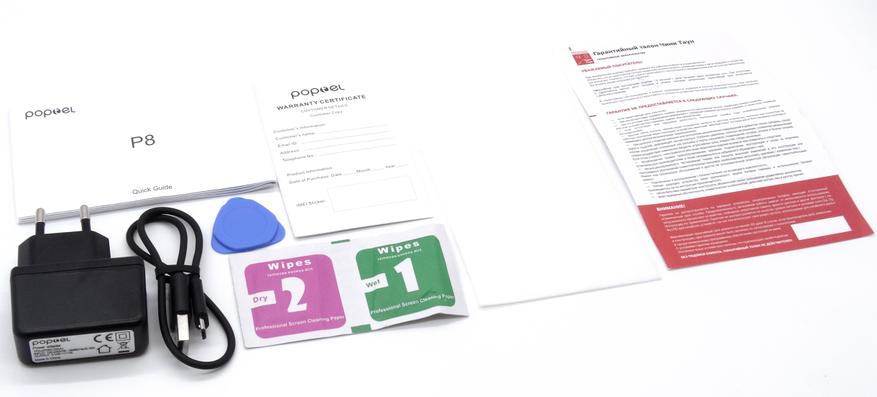 - Защитное стекло и салфетки для протирки;